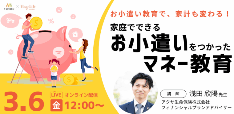 3/6【オンライン開催】お小遣い教育で、家計も変わる! 家庭でできる「お小遣い」をつかったマネー教育