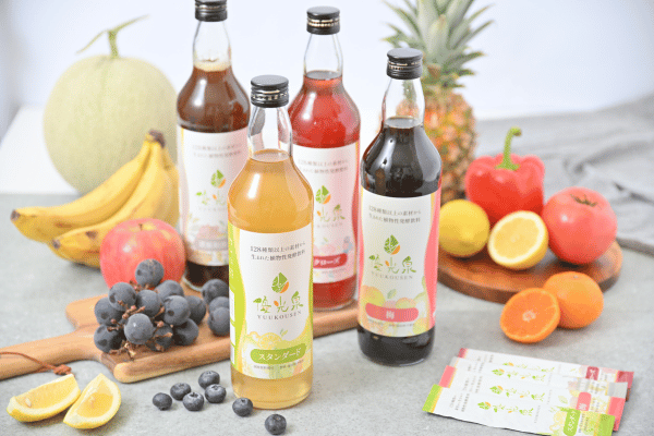 優光泉(ゆうこうせん)は、128種類以上の野菜・果物・海藻・穀物などを、国菌(こうじ菌)でじっくり発酵させた『酵素ドリンク』です。